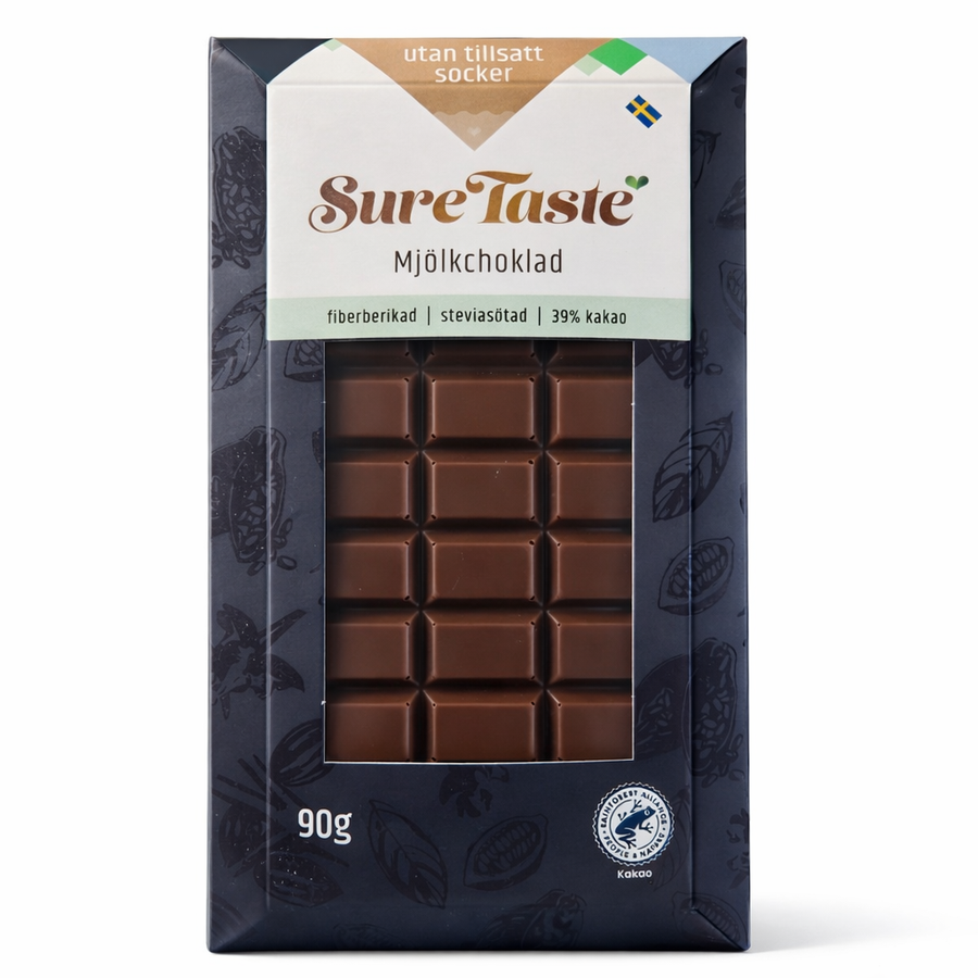 Mjölkchoklad med 39 % kakao erbjuder en sammetslen och fyllig chokladupplevelse, helt utan tillsatt socker. Med 28 % fibrer och färre kalorier är den designad för dig som vill njuta av choklad med gott samvete.