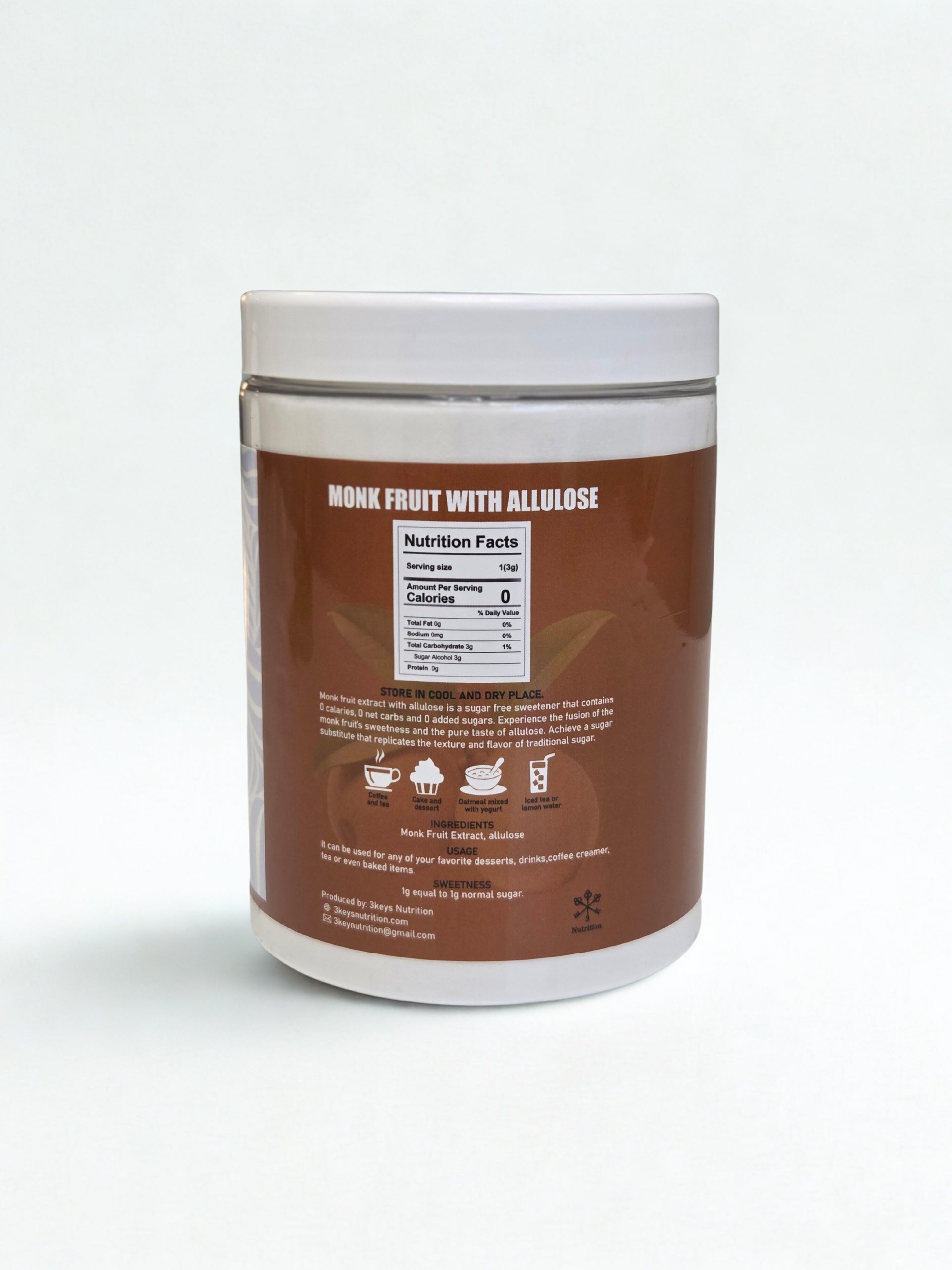 Monk Fruit, eller "Luo Han Guo", är en subtropisk frukt från Asien med en lång tradition av användning tack vare sin naturliga sötma och hälsofördelar. Vi har kombinerat Monk Fruit-extrakt med Allulos för en perfekt balans av sötma – utan att påverka blodsockret.