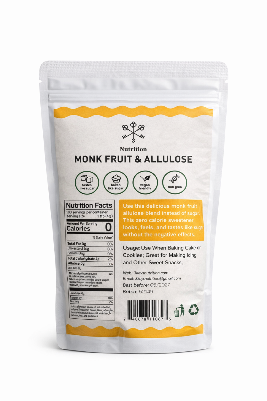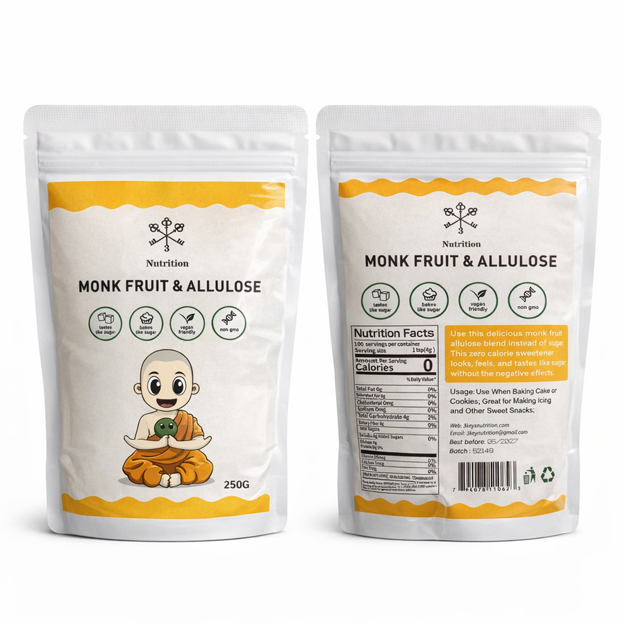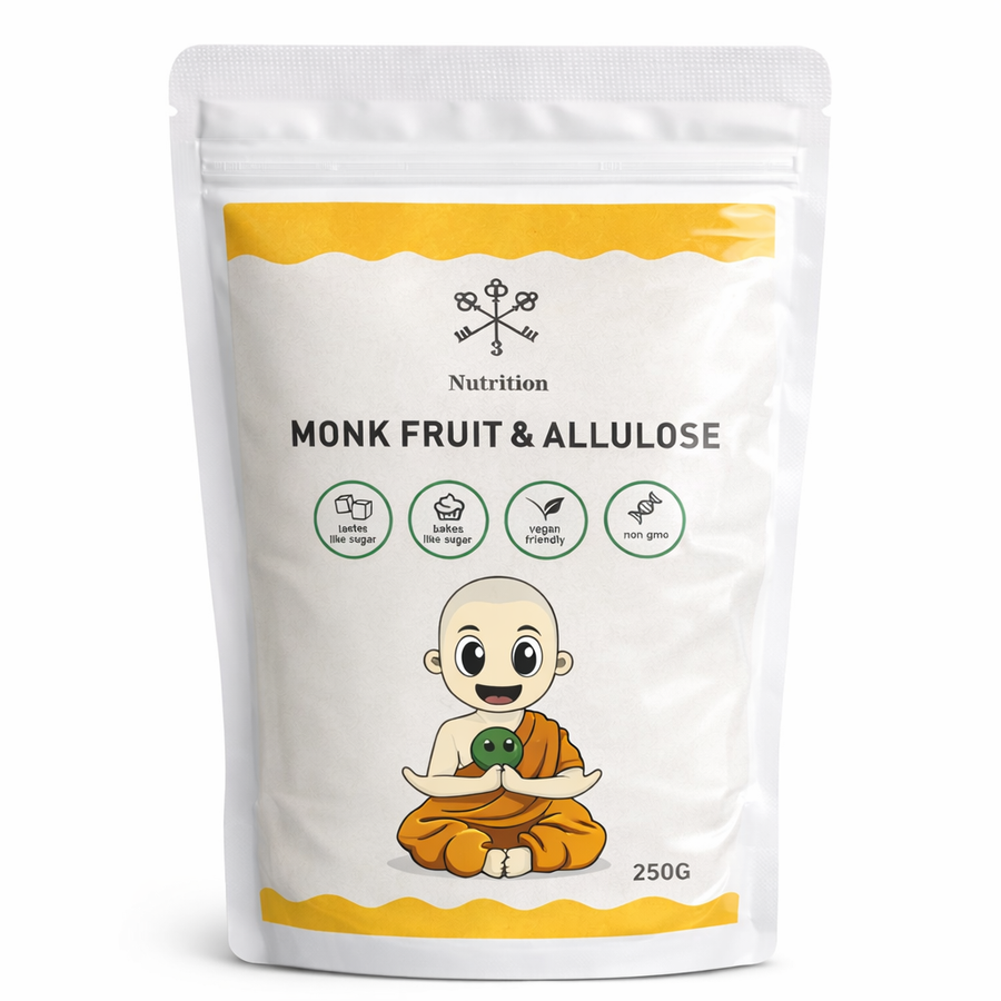 Upptäck fördelarna med vårt högkvalitativa monkfrukt (Luo Han Guo)-sötningsmedel, i perfekt kombination med allulos. Resultatet blir en balanserad, naturlig sötma som: